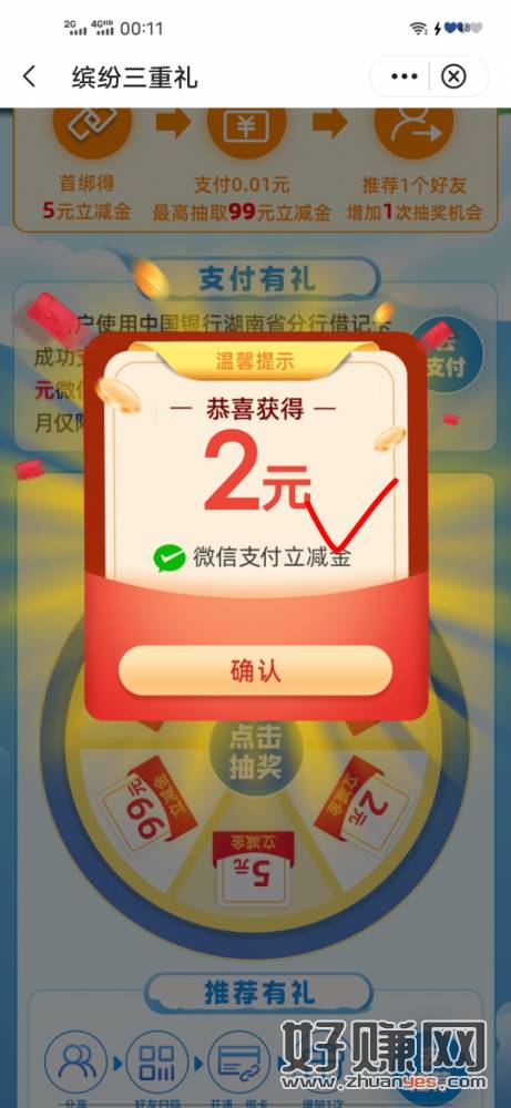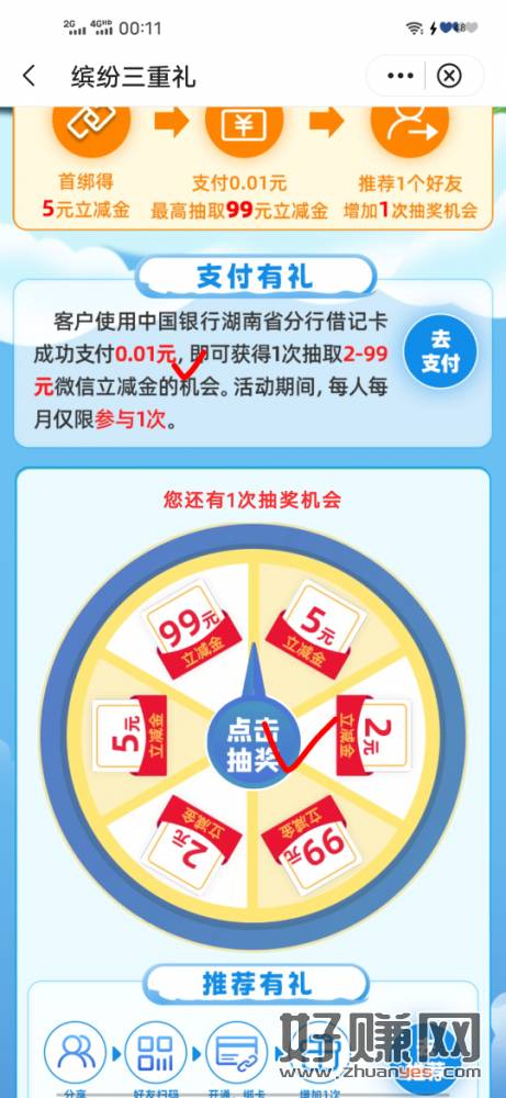 湖南 中行 生活 缤纷三重礼 支付0.01 转盘抽立减金