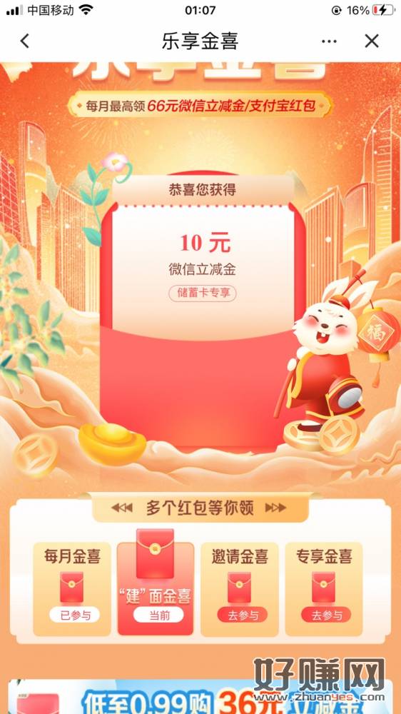 我记得上次活动开的北京e账户,建行app搜 乐享金喜 ,储蓄卡信用卡可选。