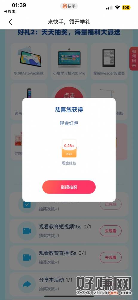 快手 领开学礼 试试