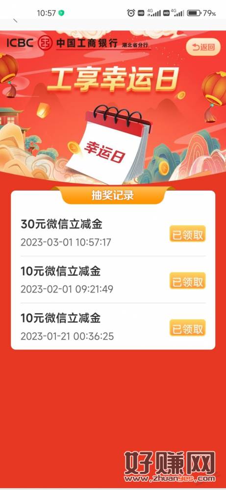 工行任务中心-工享幸运日,抽奖刚中30立减金