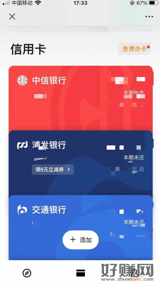 浦发xing/用卡5元毛