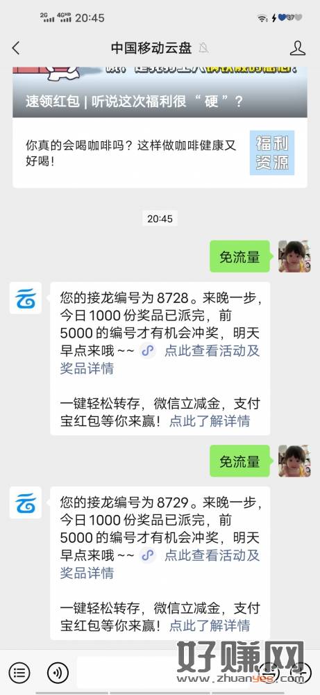 #公众号:中国移动云盘 回复 免流量