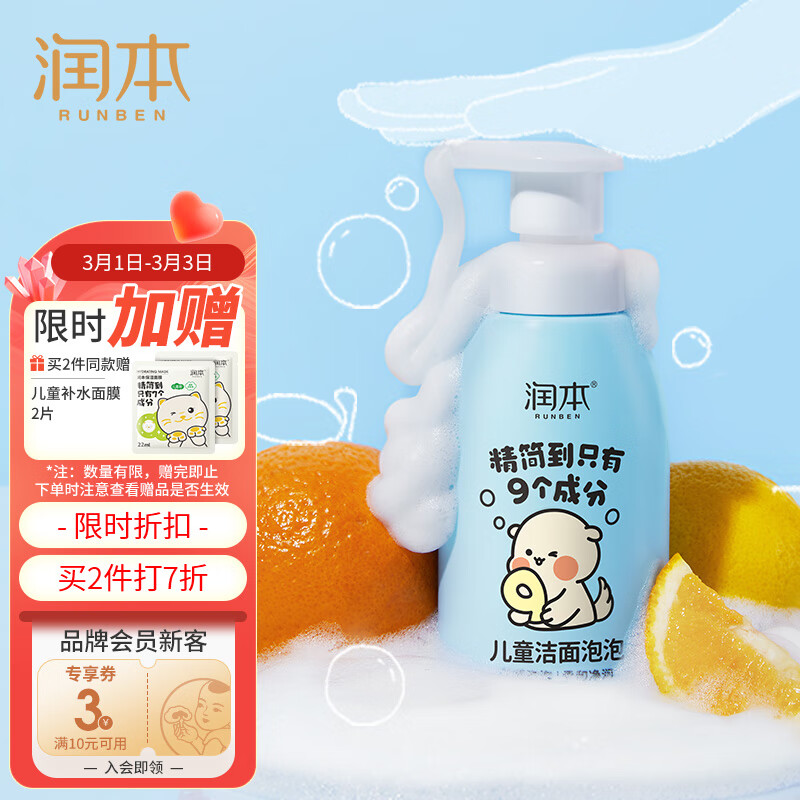 下单变价14.9亓+u,润本RUNBEN 儿童洁面泡泡100ml