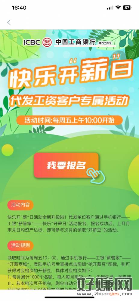 广西工行 首页 工银薪管家 快乐开薪日 进去报名 抽