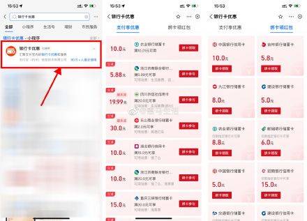 【支付宝各类银行支付优惠大全】支付宝搜索“银行卡优惠”->有各种大小银行的支付优惠,标题下方有可用场景,根据提示领取或支付即可