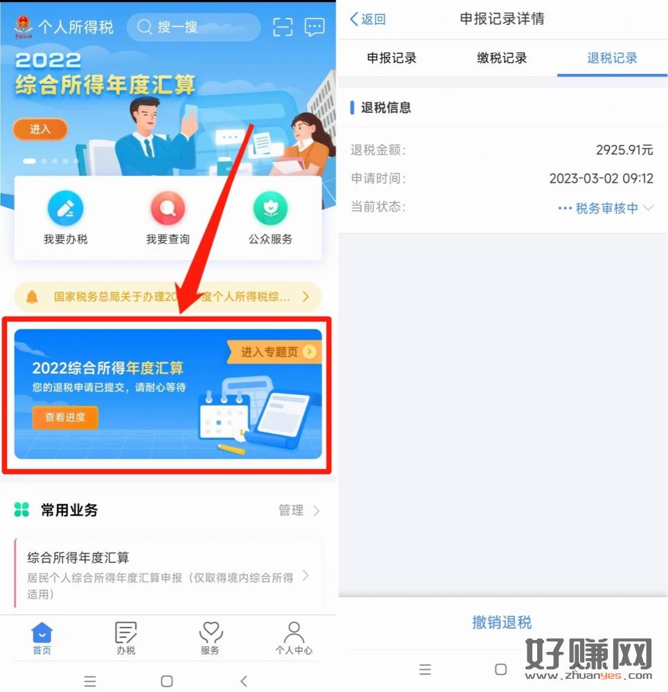 个人所得税APP可以退税了 箭头所指的地方 预约退税 然后按照规定时间填写相应资料,申请退税,等待到账即可。