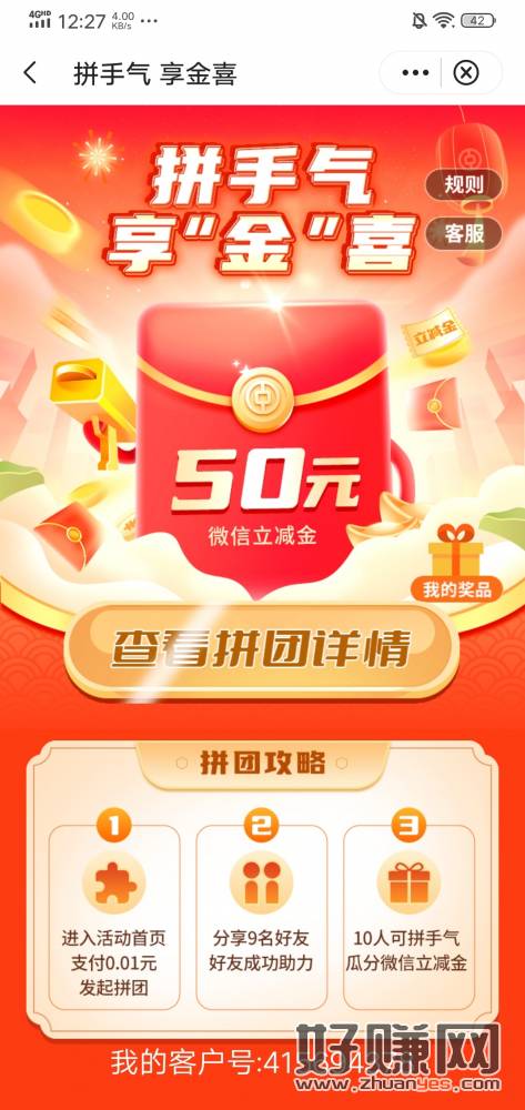 工行月月花达标抽99元立减金