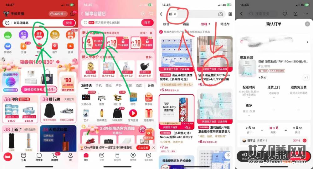 淘宝天猫超市搜财运旺翻咔抽猫卡 1-5元薅洽洽瓜子1斤