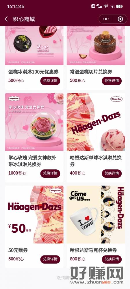 哈根达斯发一下贴可以领88积心 按照图片提示发一下贴文案和图片可以上小红书找一下积心可以换东西不够的话就每天签到我个人觉得那个50元蹭券是比较值的就相当于50块钱可以消费这个好像也可以卖的号多的也可以多号玩