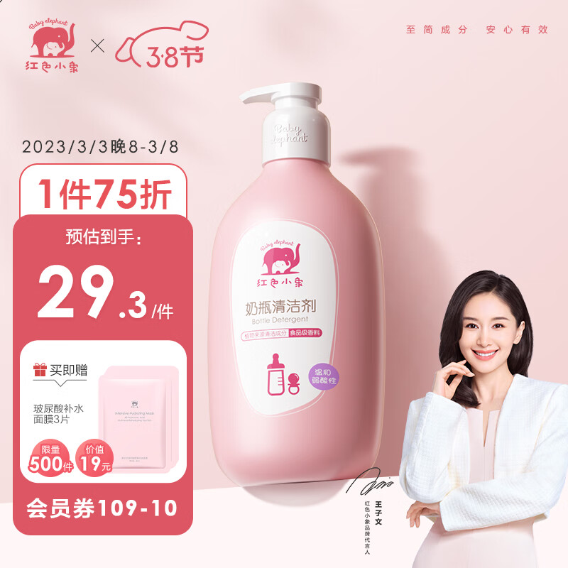 先领75-35券,红色小象 婴儿奶瓶清洗剂400ml