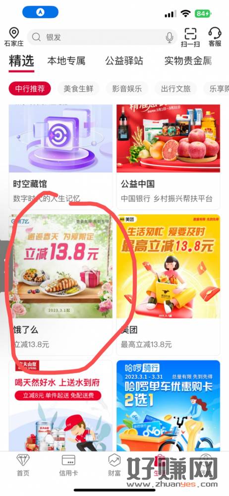 最低8-10元利润!! 中国银行生活下拉 12点卡点领 可以自己点外卖抵扣 也可以t