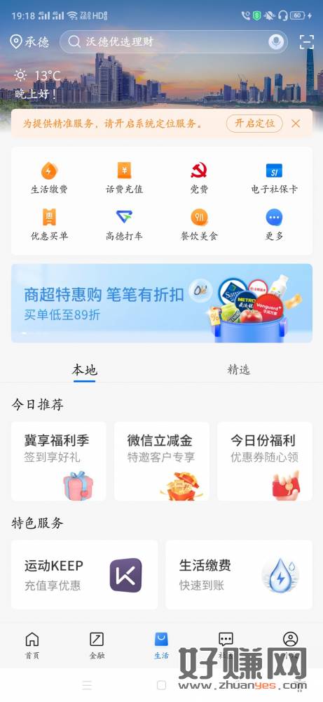 交行有河北一类二类的去,生活左上角定位河北任何一个区,冀享福