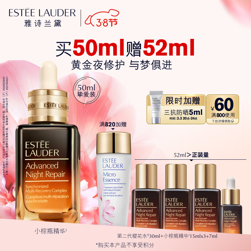 雅诗兰黛小棕瓶礼盒特润修护精华液50ml护肤品套装化妆品38节女神节礼物