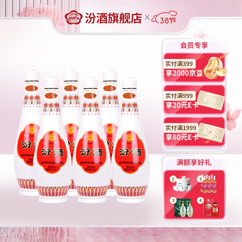先领399-50品类券,汾酒 杏花村48度乳玻汾 琵琶汾475ml*6瓶