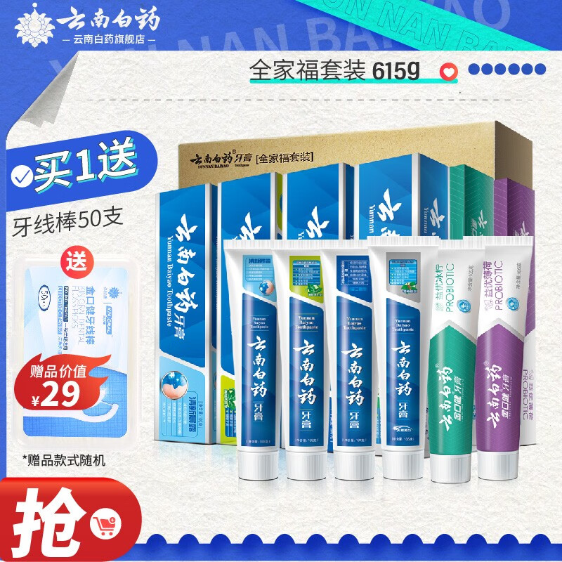 plus先领-5全品,云南白药 美白抗敏全家福牙膏套装615g共6支装