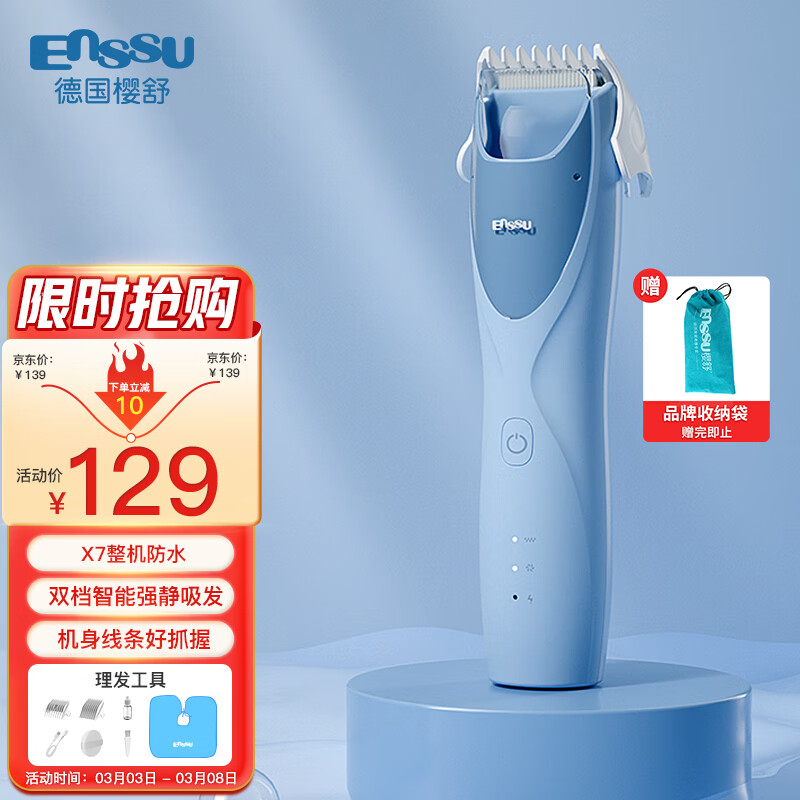 樱舒Enssu自动吸发婴儿理发器ES828A,99亓自营包邮