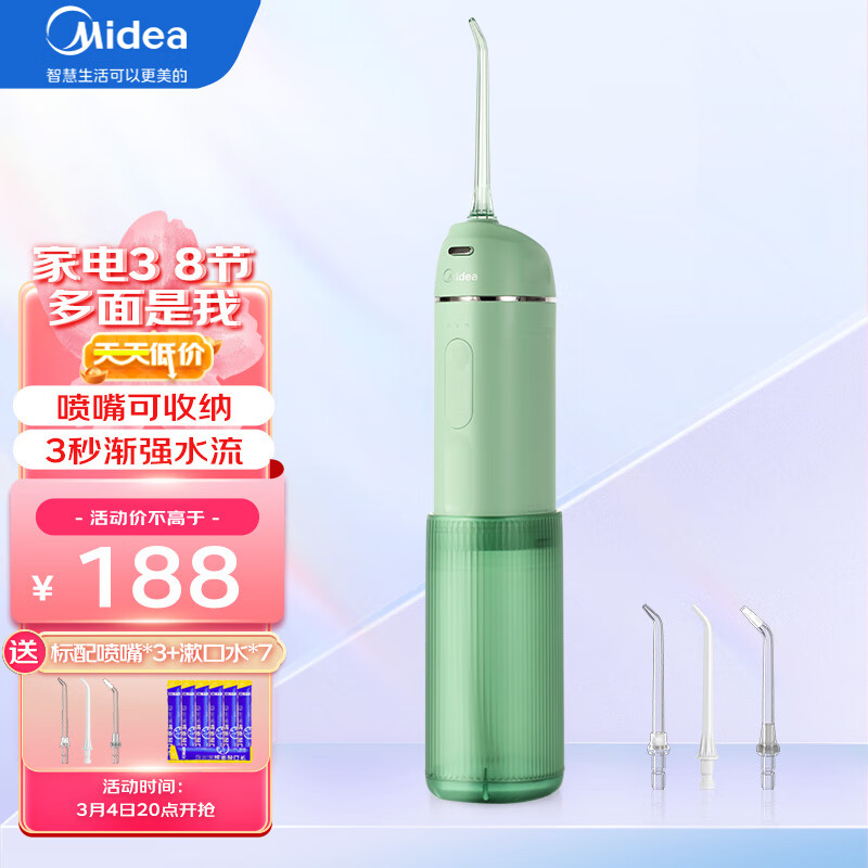 美的(Midea)迷你水牙线洗牙器70天长续航+3个喷嘴