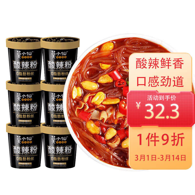 莫小仙 方便速食食品酸辣粉136g*6桶,叠-10首购礼金,付22.3亓+u