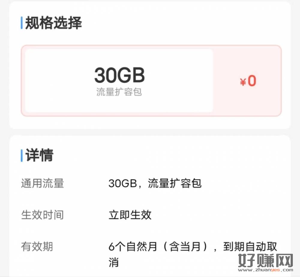 〖注意事项〗:每个月送30g流量,一个送6个月。
