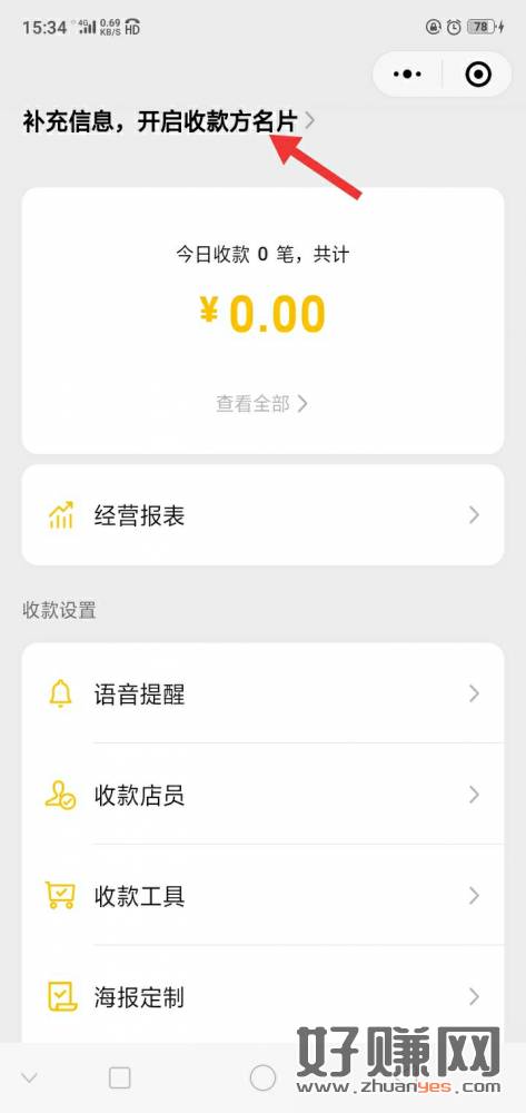 2.打开收款页面,打开收款小账本,设置名片。填好资料,照片随意传,秒开。
