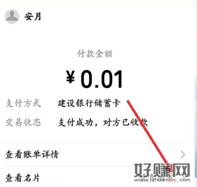 3.大号扫小号收款码付0.1,在微信支付的提示里点赞赏商家。复制链接发送保存,随时用,一个链接对应一个微信号,换号重新复制链接。