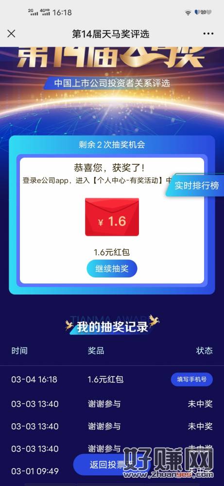 V打开 邮生活签到七天还没抽的