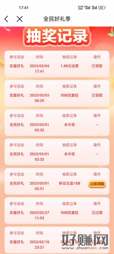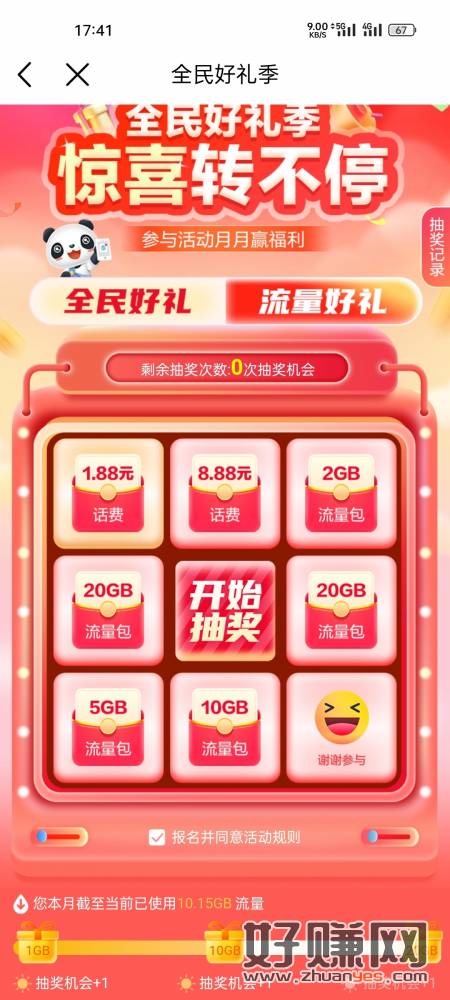 四川移动用户,中国移动或者四川移动APP,首页全民好礼,两个活动,记得手动领奖,过期了就没了上次中了几十g流量和8.88话费没领就不给补