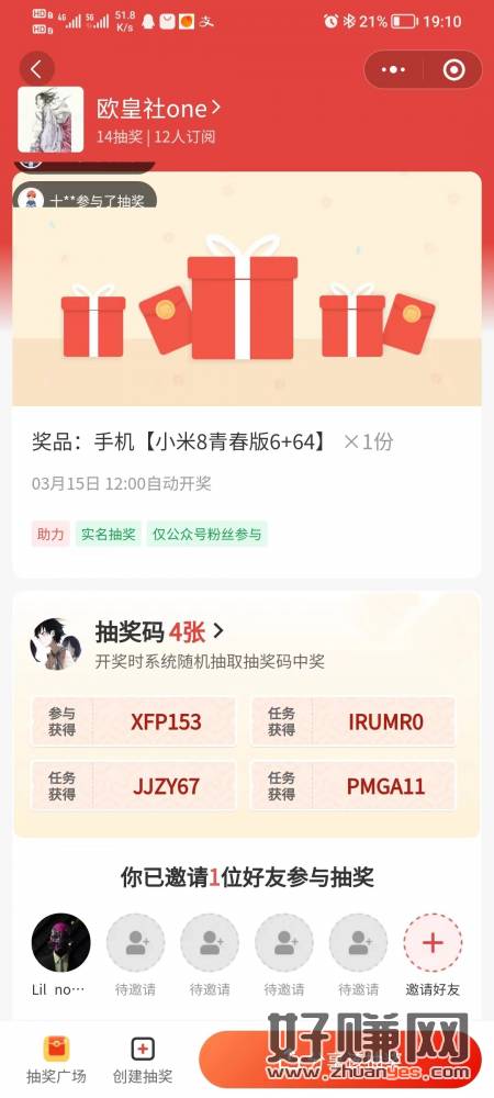 关注微信公众号【欧皇社one】回复“锦鲤附体,所抽皆中” 参与抽奖 奖品:手机 开奖时间:3月15日