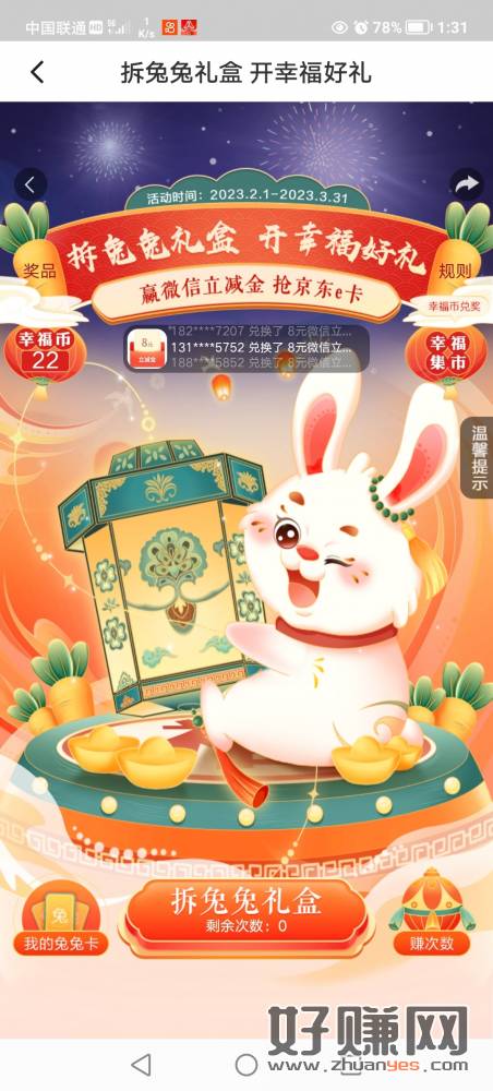 厦门国际银行,活动中心,拆兔兔礼盒,幸福币兑换立减金
