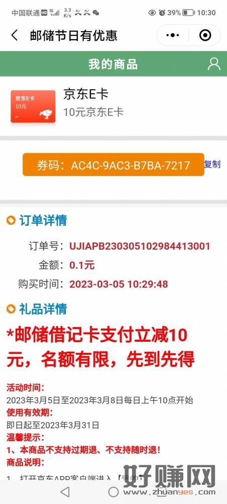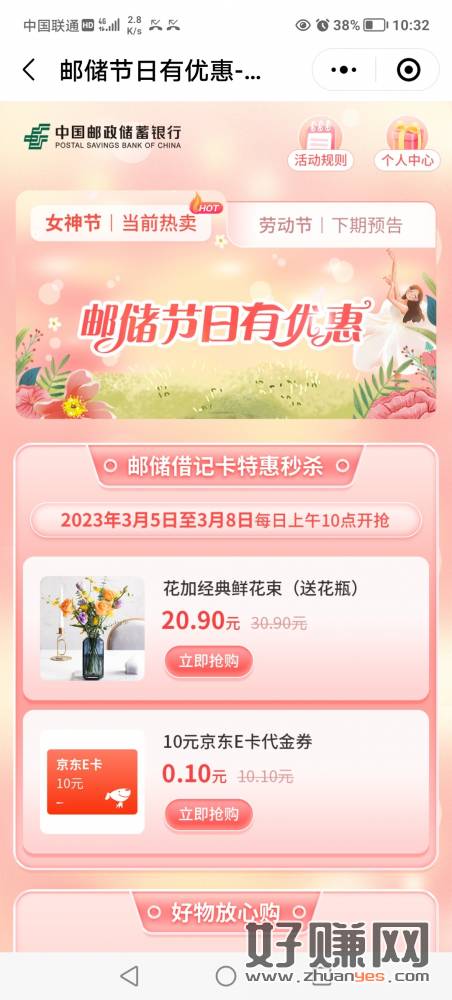 小程序邮储好礼汇,0.1元抢京东e卡活动到3月8号