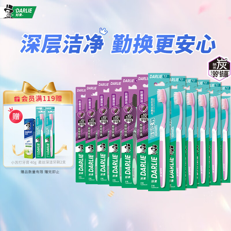 DARLIE好来 炭丝软毛成人牙刷 12支,先入会,12.9亓+u,折1亓/支