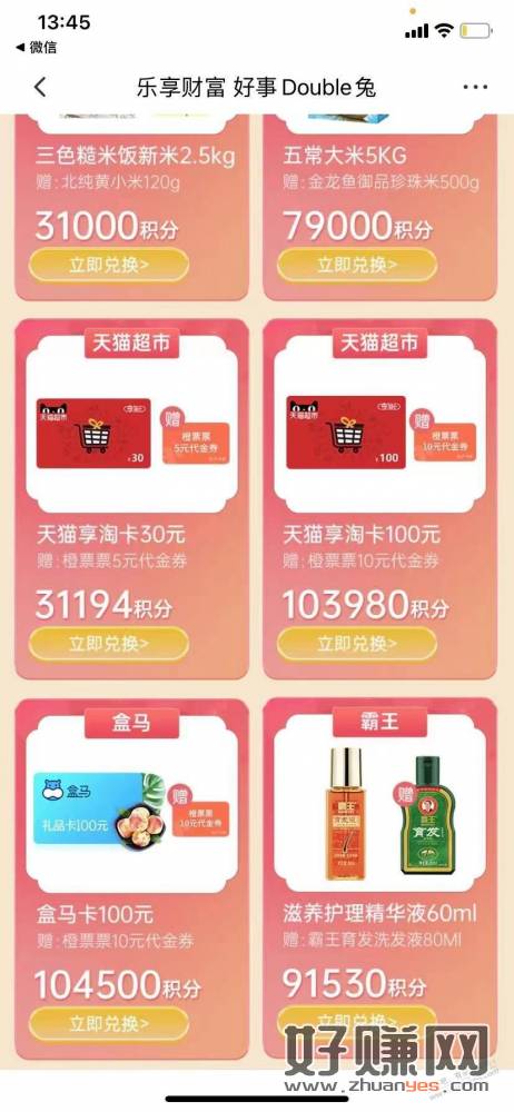 8.8w积分换100盒马或者猫超卡,好几个号都换了,30的也可以,目前还有,没有等上库存,抢到加果
