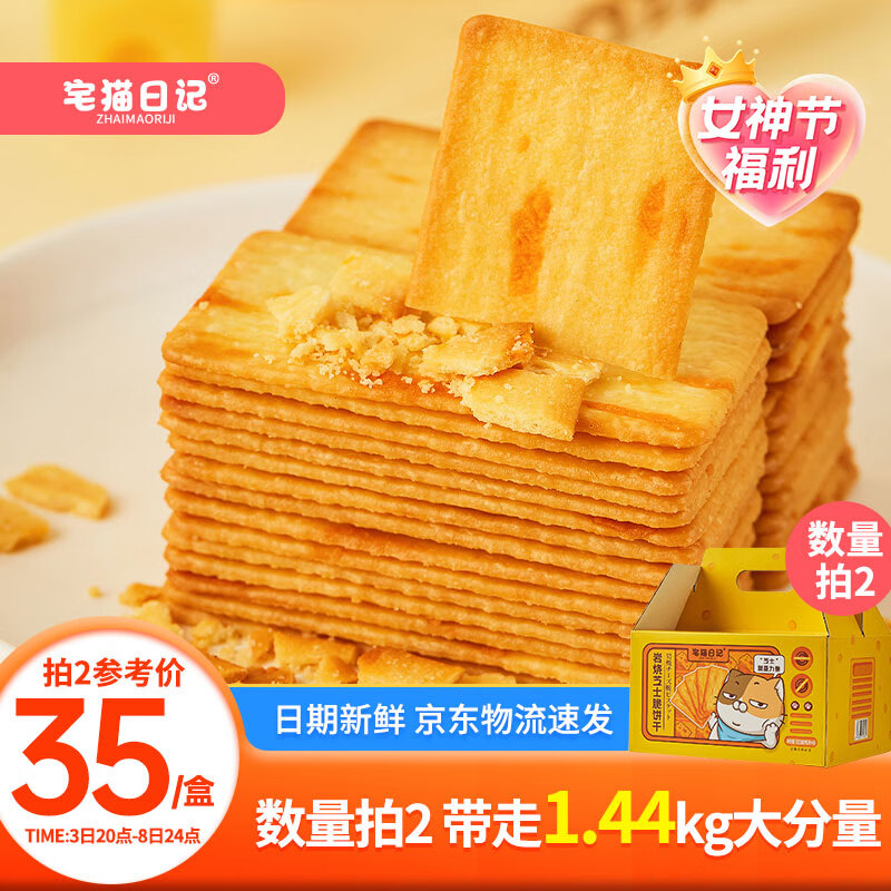 宅猫日记 岩烧芝士脆饼干720g 礼盒装,下单2件,到手70亓+u