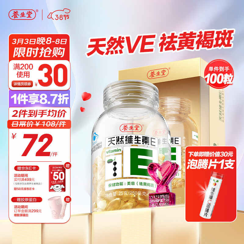 养生堂 天然维生素E100粒软胶囊 VE美容
