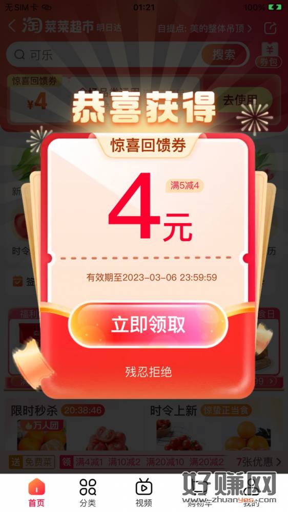 手淘搜索”淘菜菜“-部分用户有惊喜回馈5-4券