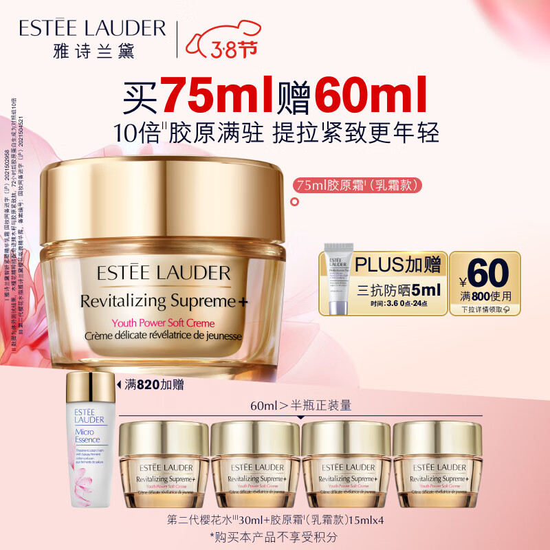雅诗兰黛 智妍胶原乳霜款面霜75ml,买75ml赠60ml,拍下990亓