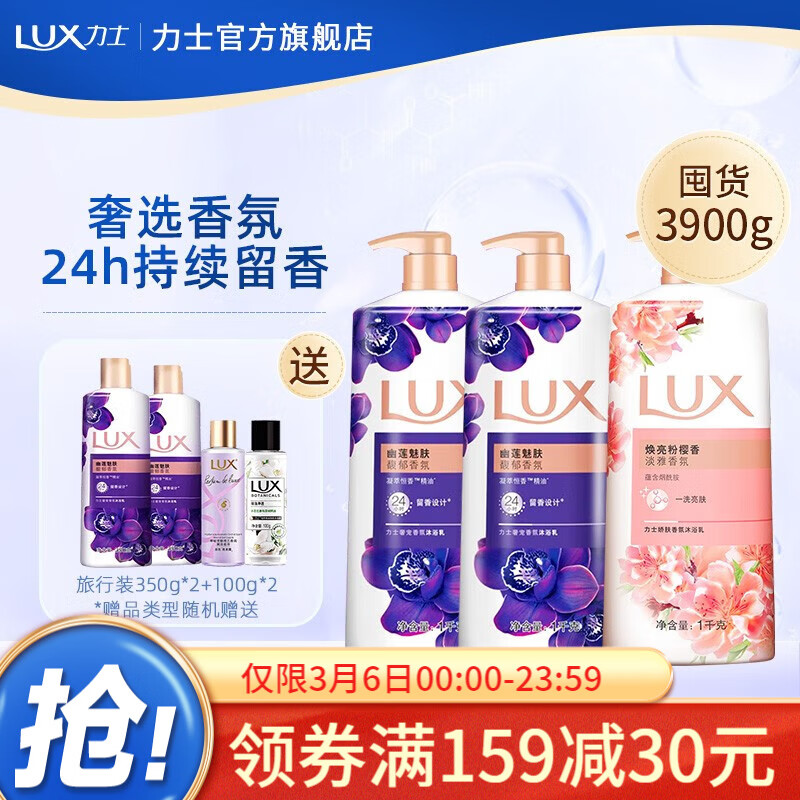 先领159-30补贴券,力士 精油香氛沐浴乳幽莲魅肤1kg*2+粉樱花香1kg