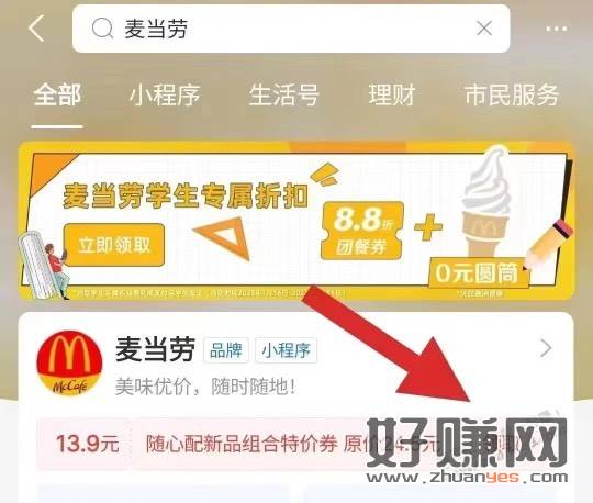 支付寶app搜:麦当劳