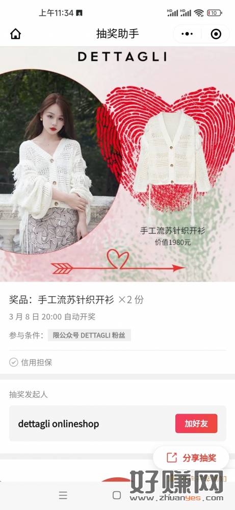 关注微信公众号【DETTAGLI】回复“告白女神” 参与抽奖 奖品:衣服 开奖时间:3月8日