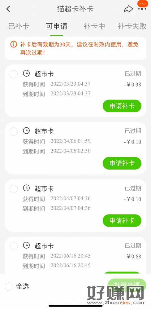 复制到浏览器跳转领取,天猫超市品类金是有限制的,领了之后别去用,等过期就行,过期了之后再去补卡就会变成无限制无门槛的天猫超市卡