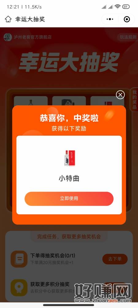 #小程序:江苏工会,个人中心,积分抽奖 有水 刚中50