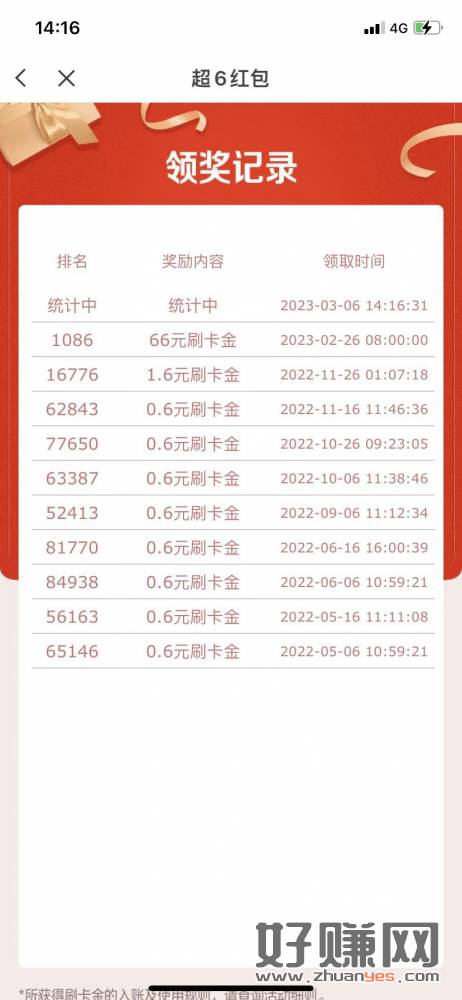浦发超6日记得报名,上个月刷了4w排名1086,刷卡前5000名就有66刷卡金