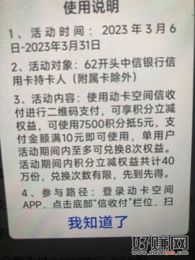 中信xing/用卡信收付7500积分抵5元(涨价了)