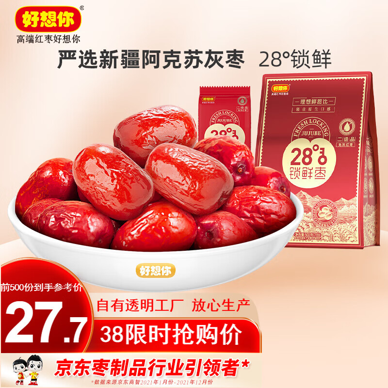 先领25-5补贴券,好想你 新疆阿克苏免洗即食二级锁鲜枣500g