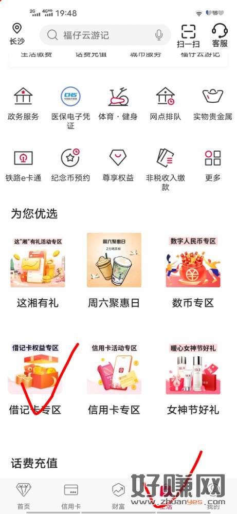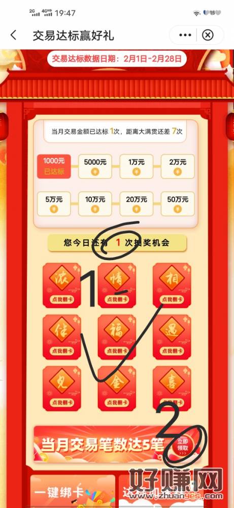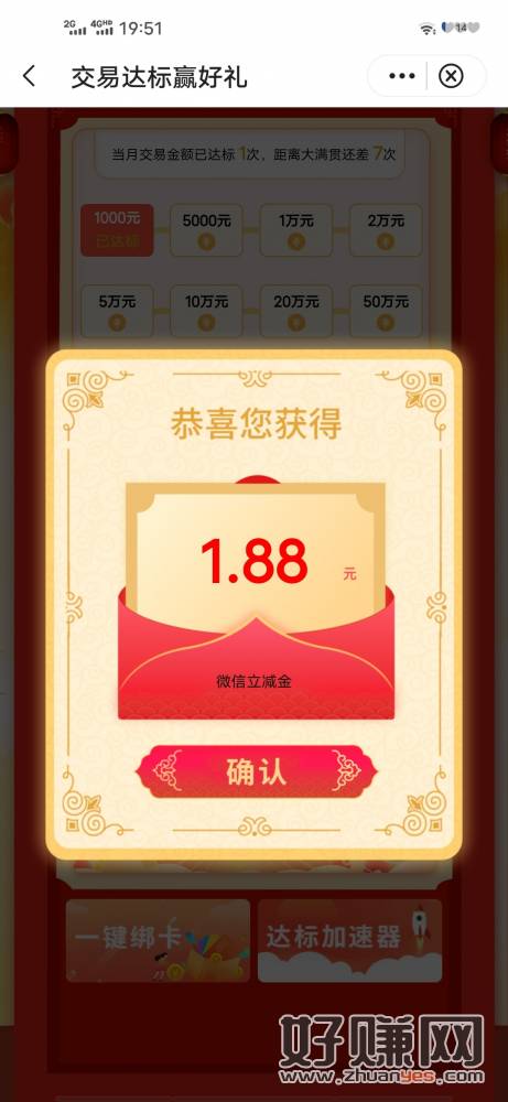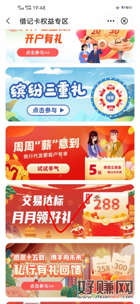 生活 借记卡专区 交易达标月月领 交易最低1000r 拿立减金 两个地方都可以拿