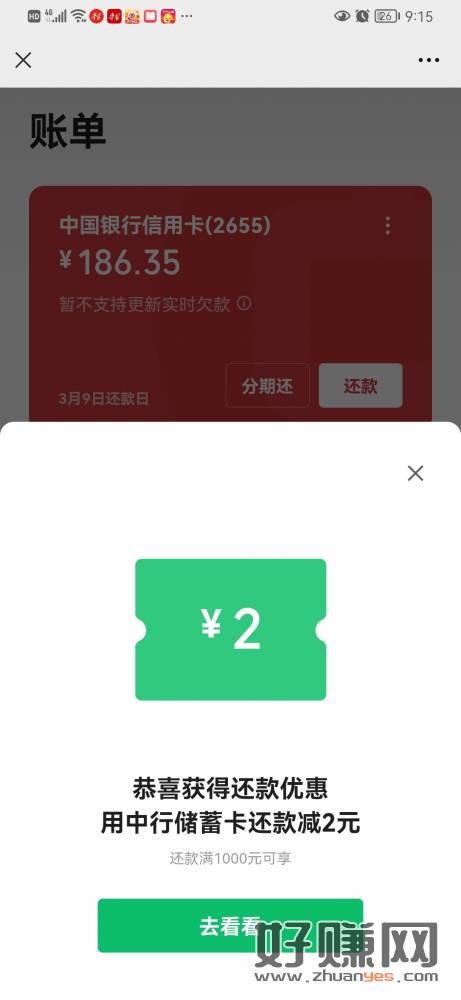 微信信用卡中行还款,自动出优惠