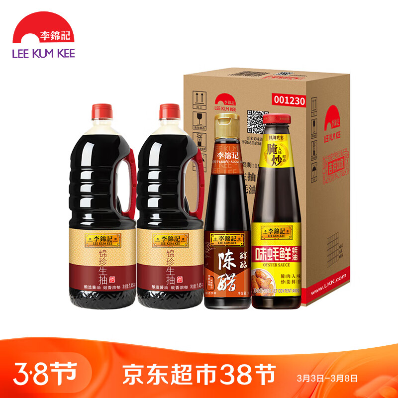 李锦记 酱油醋蚝油 锦珍生抽*2+醇酿陈醋+味蚝鲜