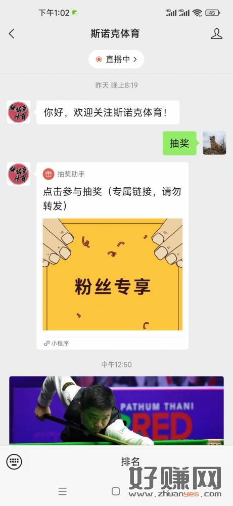 关注微信公众号[ 斯诺克体育 ]回复“抽奖” 参与抽奖 奖品: