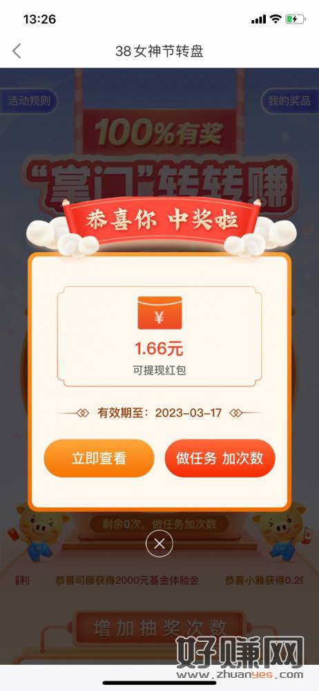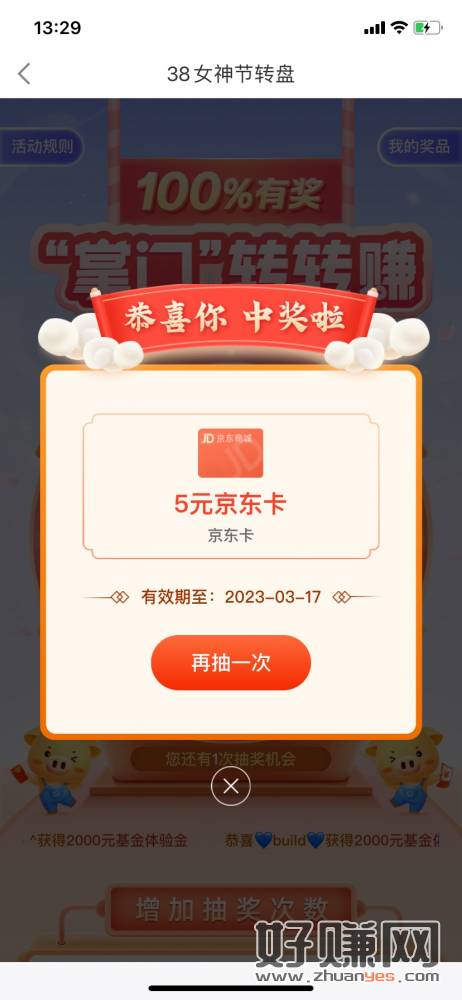 中欧基金 app首页 右边 38女神节 点进去 任务抽 看脸