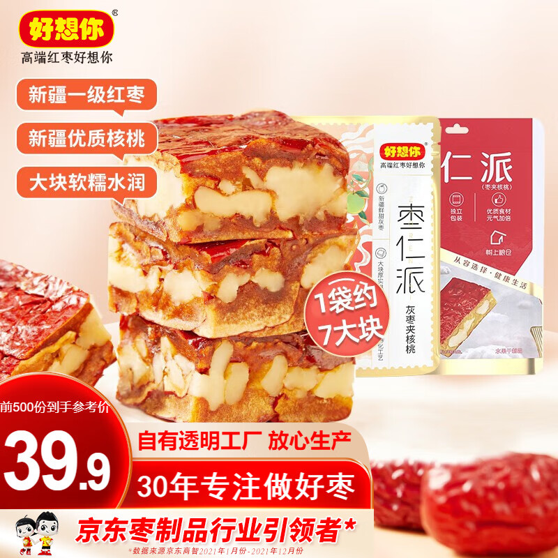先领25-5补贴券,好想你 新疆特产枣仁派198g(1袋灰枣+2袋骏枣)